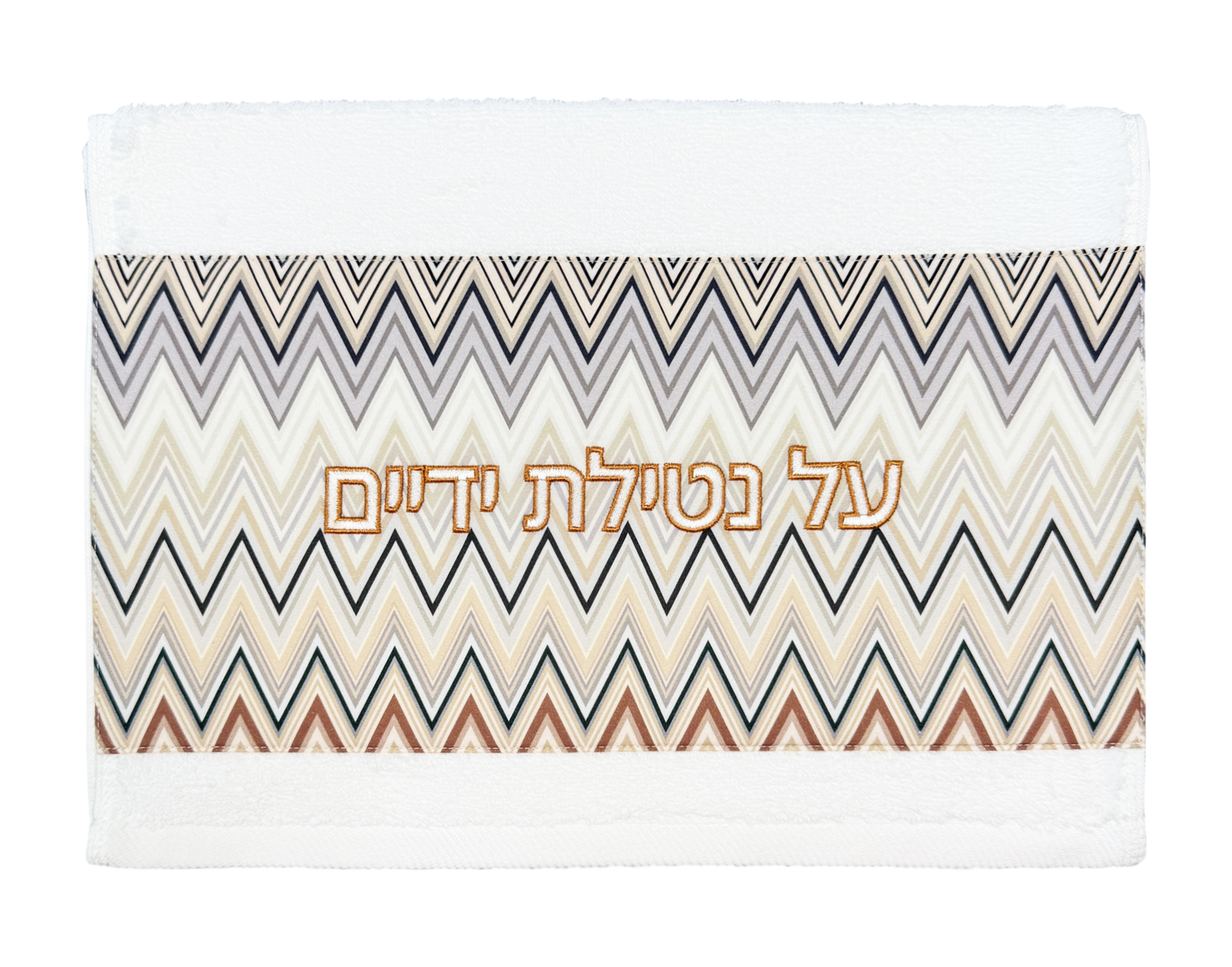 Embroidery: Al Netilat Yadayim in Hebrew in White with Rust Outline